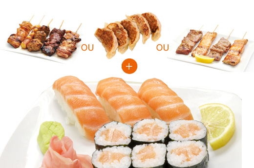 MM – Menu mixte : California maki + sashimi + brochettes ou gyoza